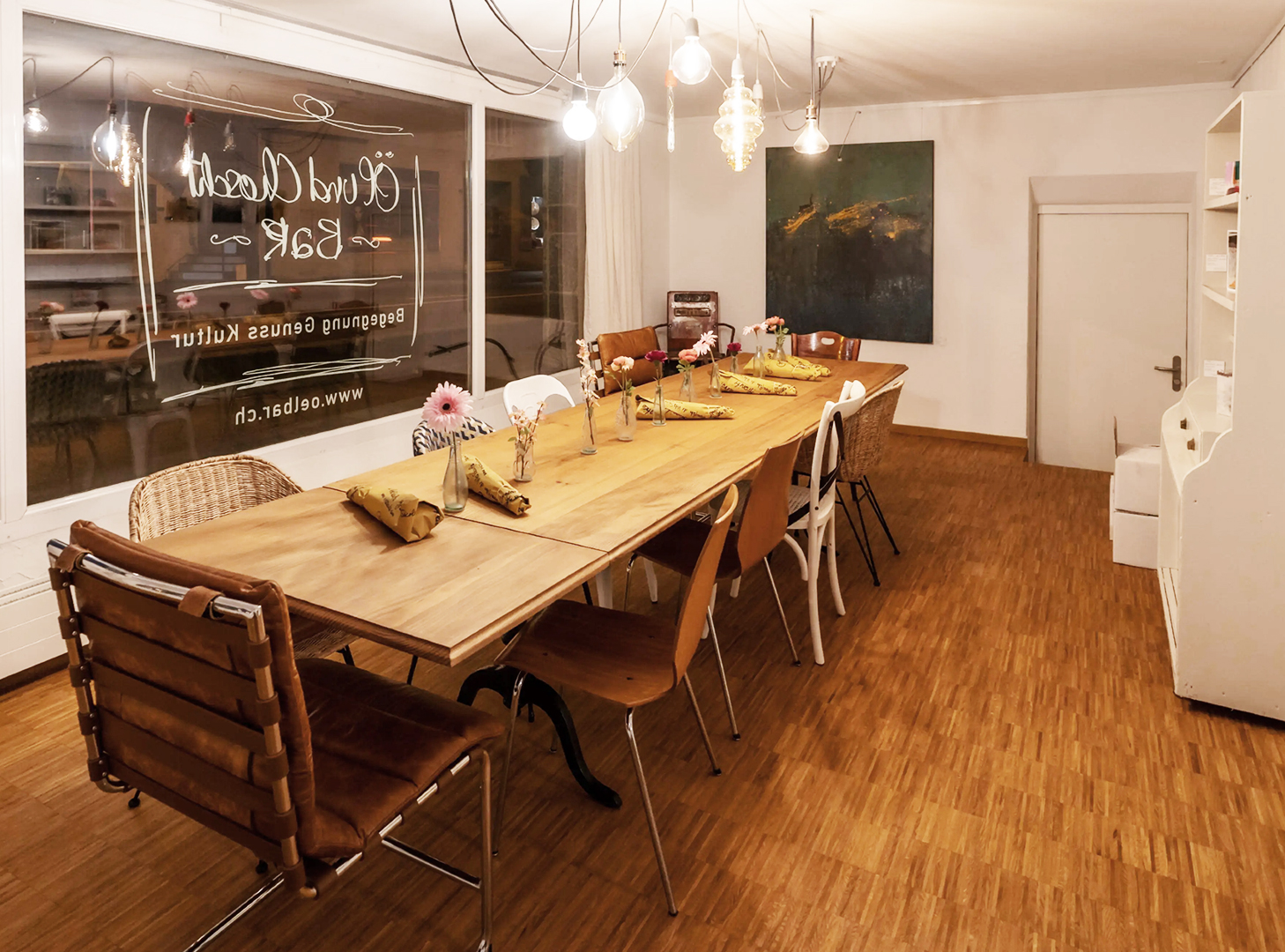 Schräges und Schrilles findet Platz, ebenso wie Filmabende, Buchpräsentationen, Backkurse, Coachings und spannende Ideen aller Art. Wir bieten eine Plattform zur Vernetzung von Aktivitäten mit sozialem Interesse – Lesungen, Treffen von Gleichgesinnten, funktionell eingerichtete Räume und eine professionelle kleine Küche für Sitzungen und Meetings, Kochkurse, Workshops, Caterings oder gemütliche Abendessen unter Freunden. Pop Up Stores können in der neuen Öl und Choscht Bar tageweise einen temporären Platz finden, wie auch die Olivenöl-Degustationen im Herbst.